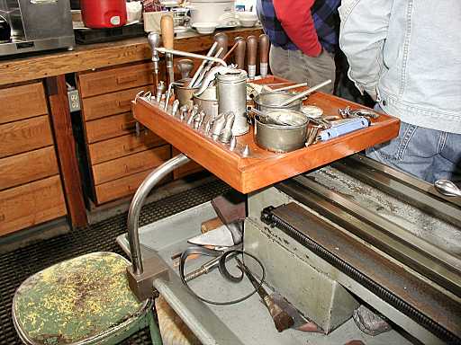 This tool tray is mounted to the chip pan and is convenient for the operator to use. See next picture for the "swing away" feature.