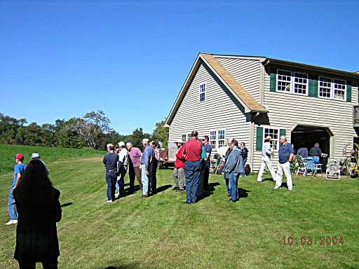 Folks gathered out back of the shop to watch Steve Peters fly an R/C helicopter. More details on the 'copter further along.
