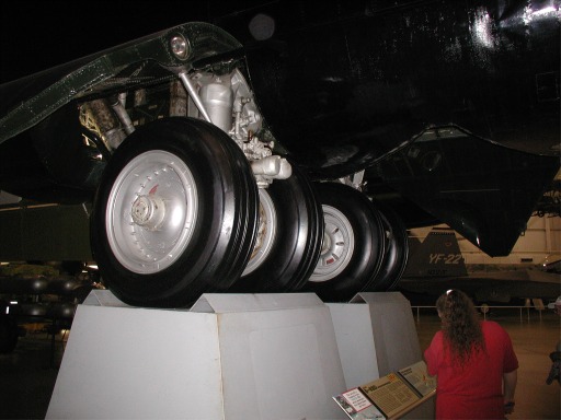 One of the wheel trucks of the B-52 Stratofortress It is just about impossible to photograph this whole airplane indoors. So I settled for this picture of the undercarriage.
