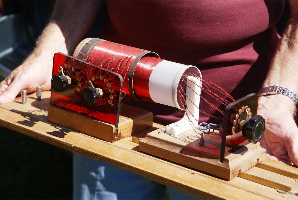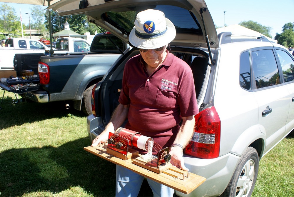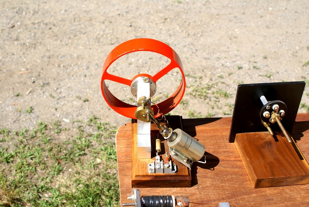 This collection of various electrical and mechanical devices are meant to demonstrate a variety of principles. They were displayed by Earl Russell of Groton MA. Earl has generously taken time to write up the following descriptions of the devices. Thank you so much Earl!
